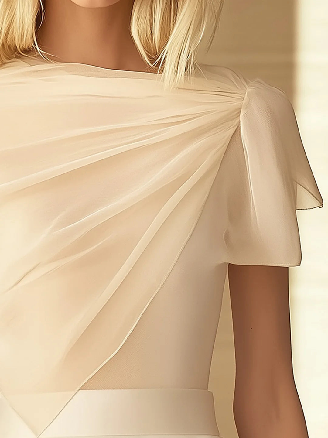 Draped Detaya Sahip Modern Krem Şifon Üst ile zahmetsiz zarafeti kucaklayın - şık ve sofistike bir topluluk oluşturmak için vazgeçilmez parçanız.